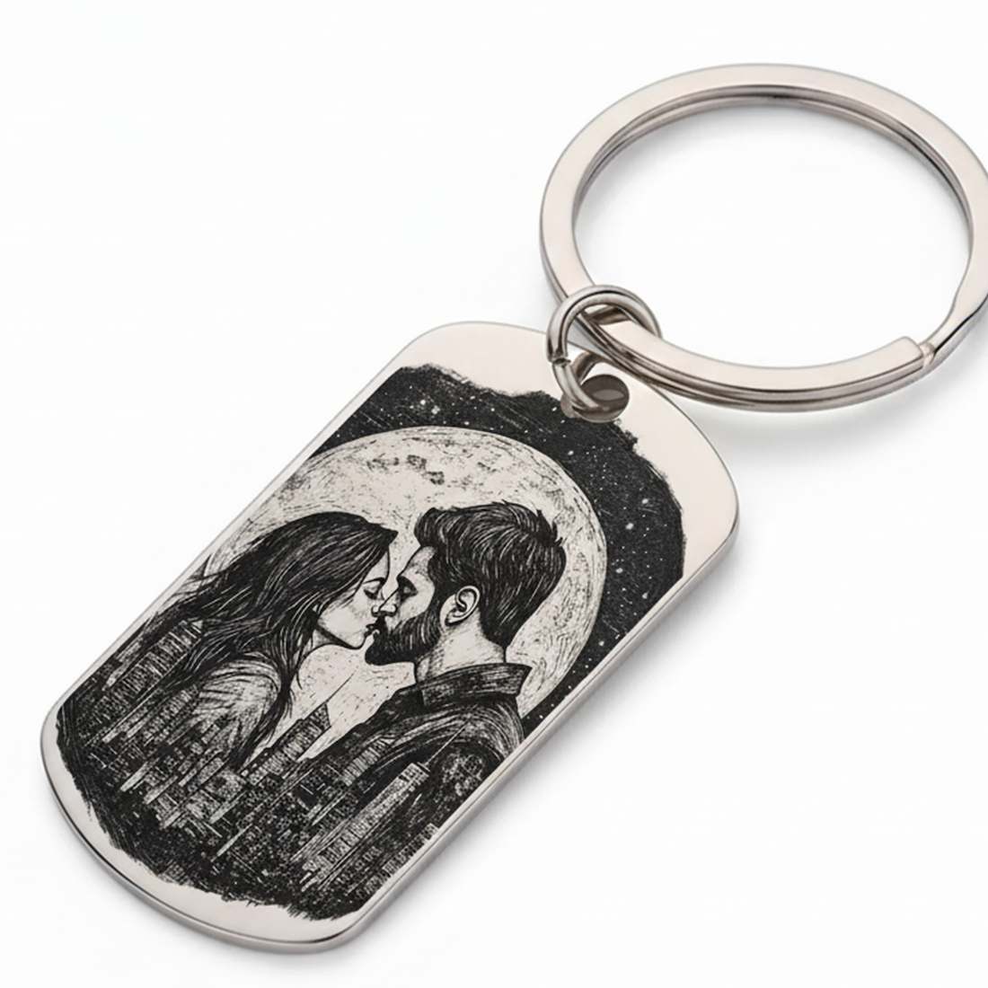 Auf die Vorderseite gravieren wir dein Wunschbild – gestochen scharf und dauerhaft eingebrannt.