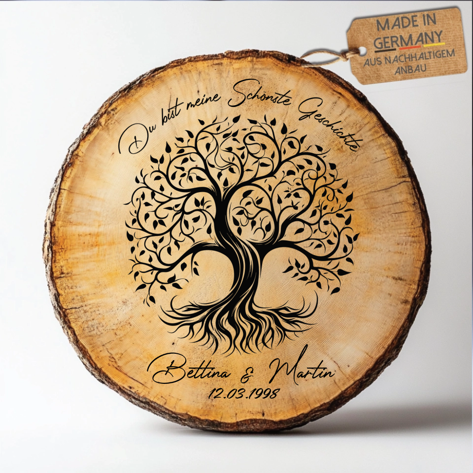 Ob Hochzeit, Jubiläum oder Geburtstag, eine gravierte Baumscheibe ist mehr als ein Präsent. Sie ist ein Symbol für Liebe, Wertschätzung und Beständigkeit.